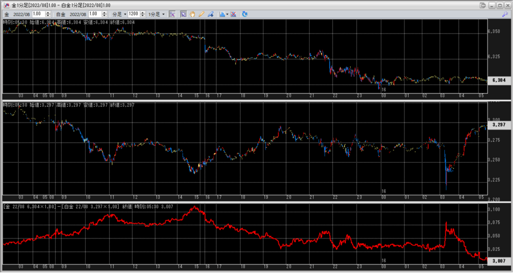 また、機会を見て鞘拡大の仕掛け金買い1枚-白金売り2枚を仕掛けていきたいと思います。
