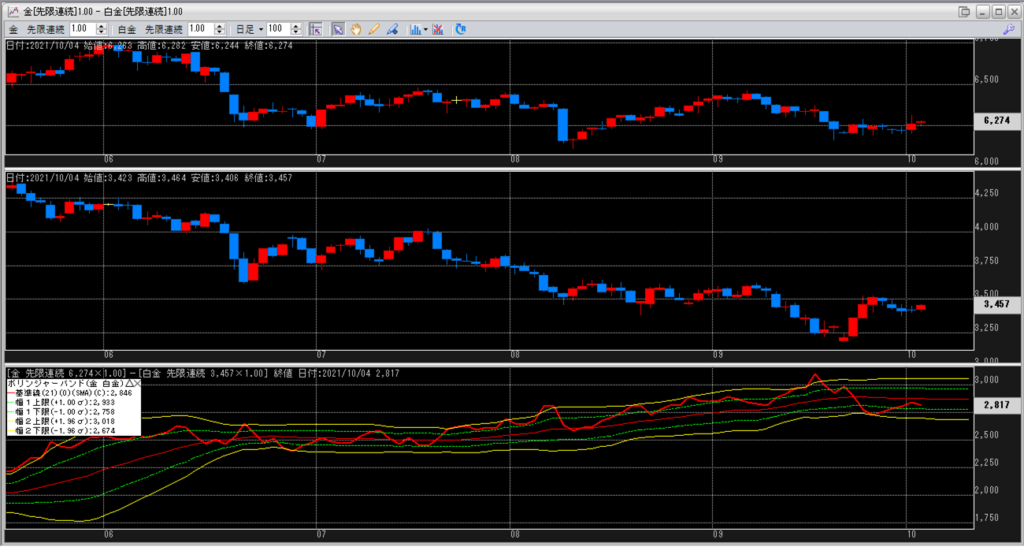 金白金の鞘をボリンジャーバンドを見ていきます。