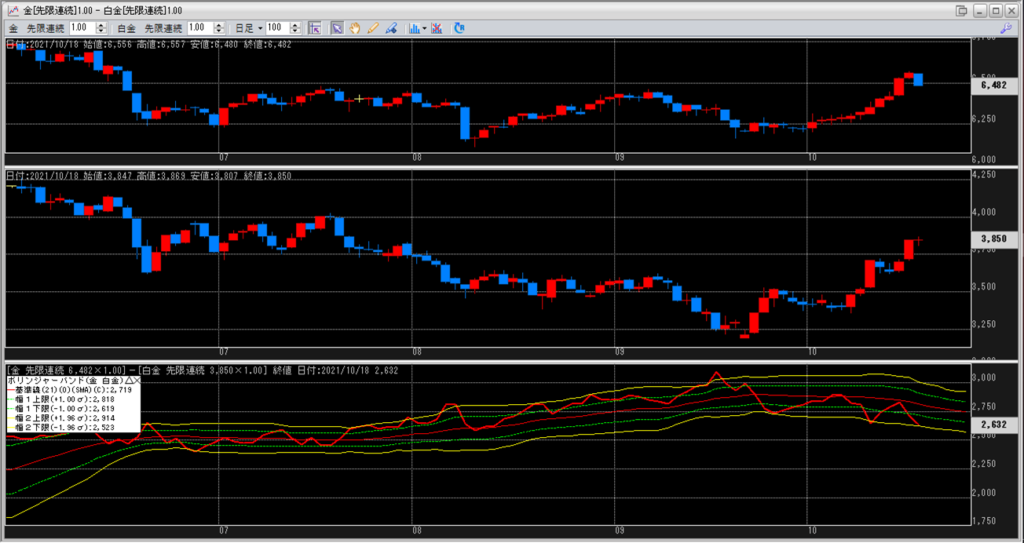 金白金の鞘の値段は、ほぼ-2σまで縮小したが、再び拡大へと戻っていくのか。