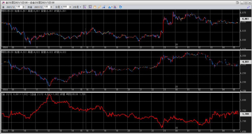そして、さらに金売り1枚ー白金買い2枚を鞘1,690円で仕掛けています。