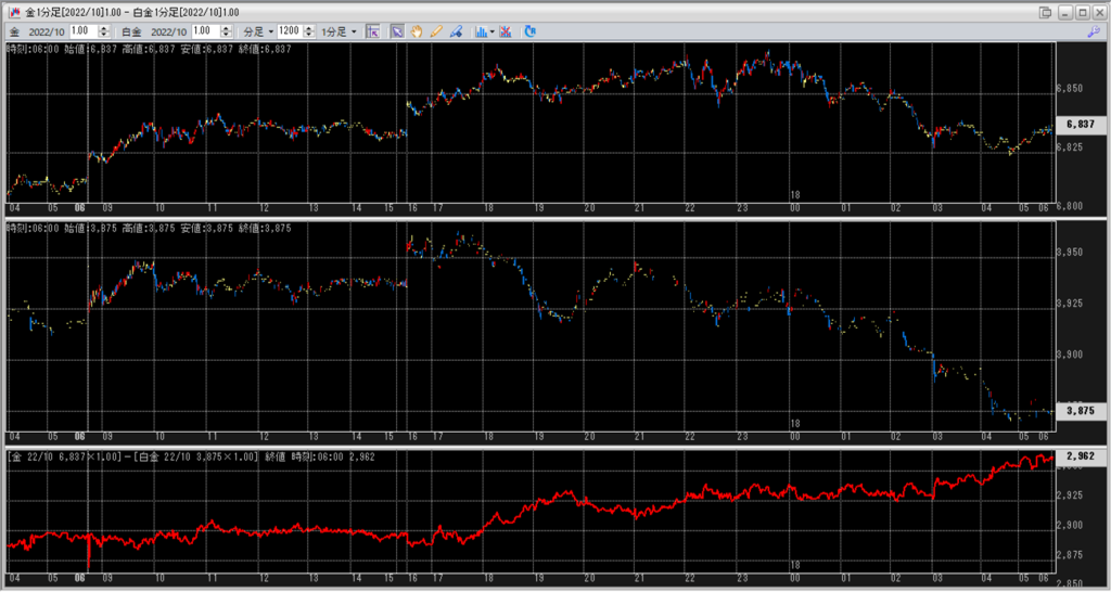 昨日は鞘拡大の仕掛け金買い1枚-白金売り2枚をデイトレしています。