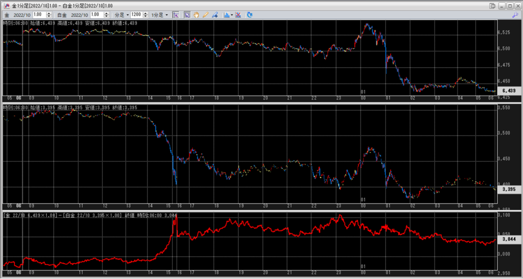 金白金の鞘の値段は、+2σまで拡大していくのか、+1σを目指し、縮小していくのか。