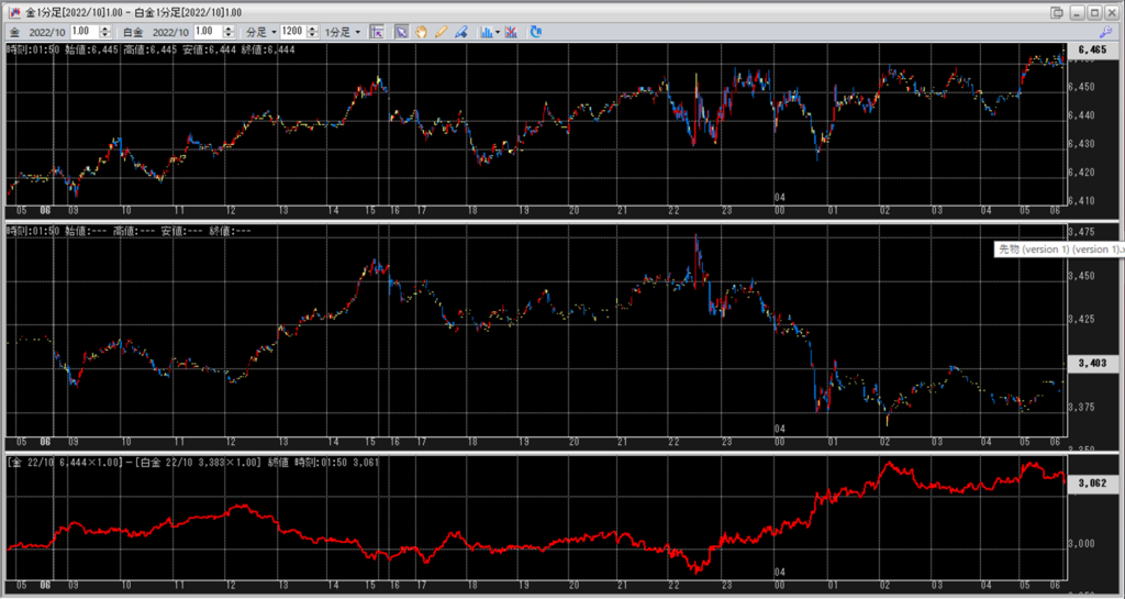 鞘拡大の仕掛け金買い1枚-白金売り2枚をもう一組、建てていくかもしれません。