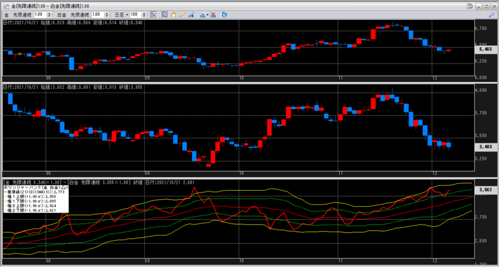 金白金の鞘をボリンジャーバンドを見ていきます。