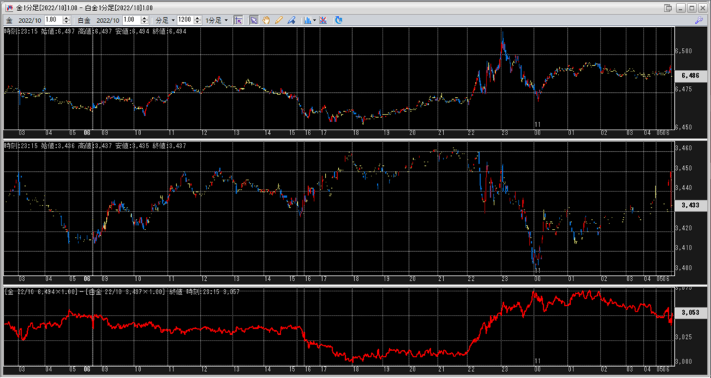中:大阪取引所 白金 2022年10月限 1分足