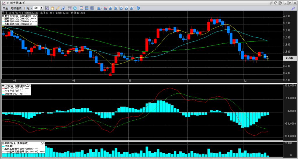 白金は、移動平均線の一番上に位置している中期線が