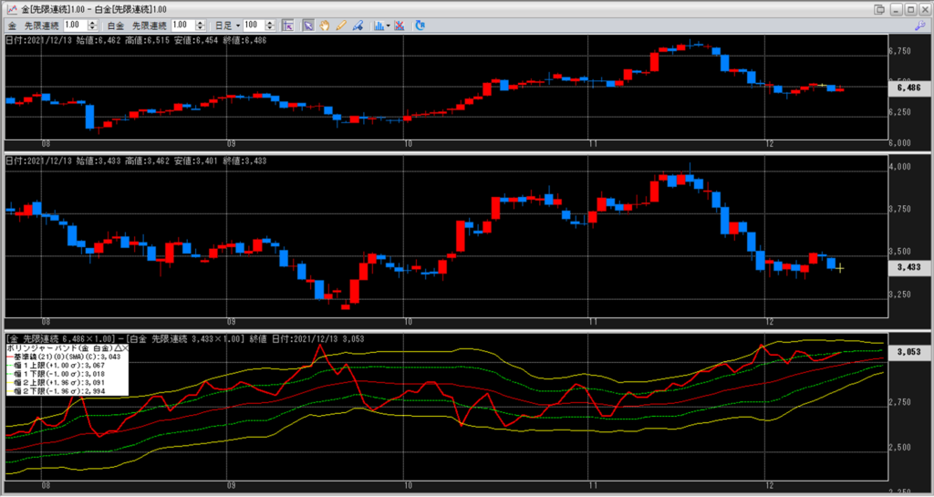 金白金の鞘の値段は、+1σを超えてきたが、このまま鞘拡大していくのか。