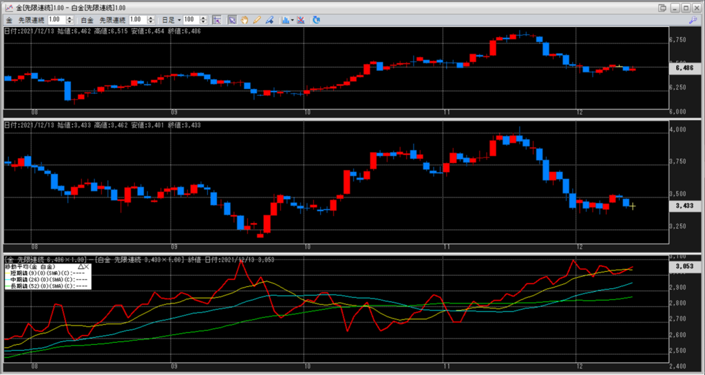 金白金の鞘の移動平均を見ていきます。