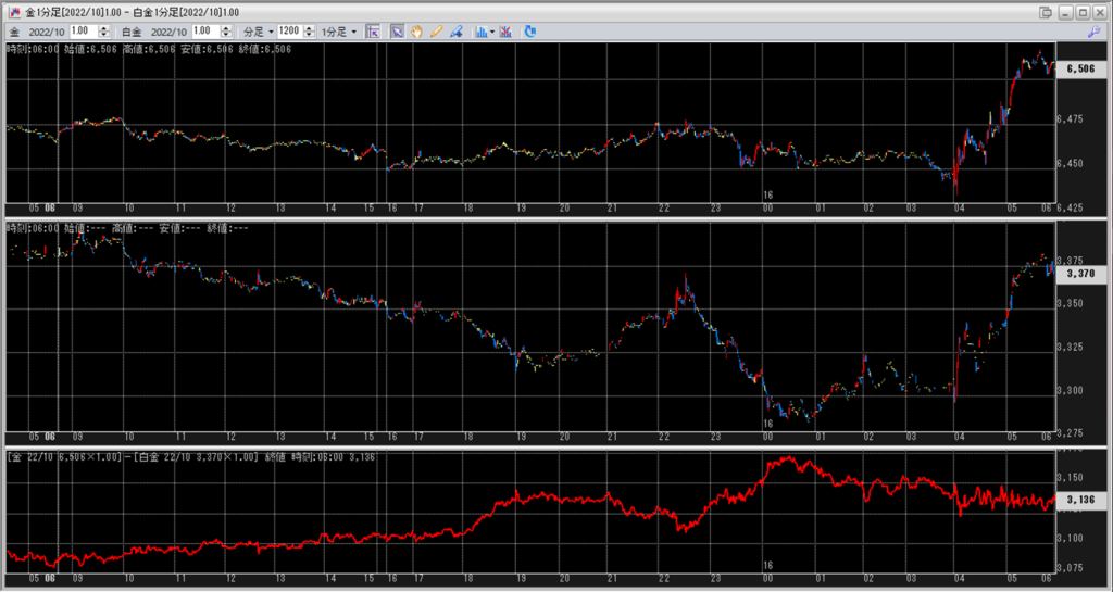 中:大阪取引所 白金 2022年10月限 1分足