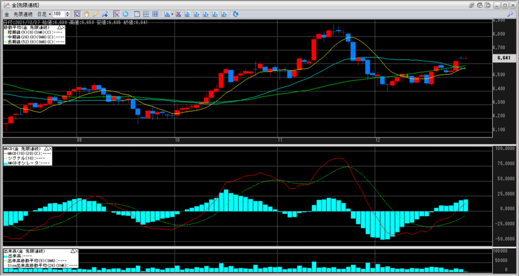 金価格は、6:00時点での終値は6,641円となっています。