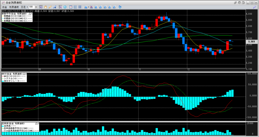 白金単体で見ると、前日比で-9円となっております。