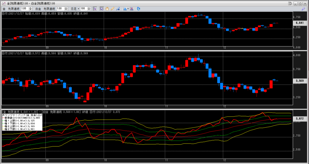 年末年始前には鞘拡大の仕掛け金買い1枚-白金売り2枚を仕切っていきたいと