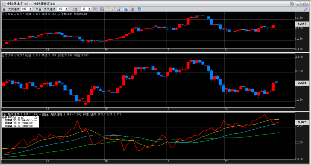 金白金の鞘の移動平均を見ていきます。