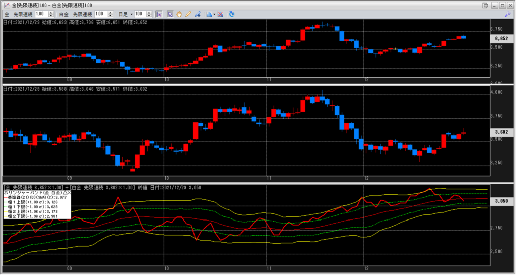金白金の鞘をボリンジャーバンドを見ていきます。