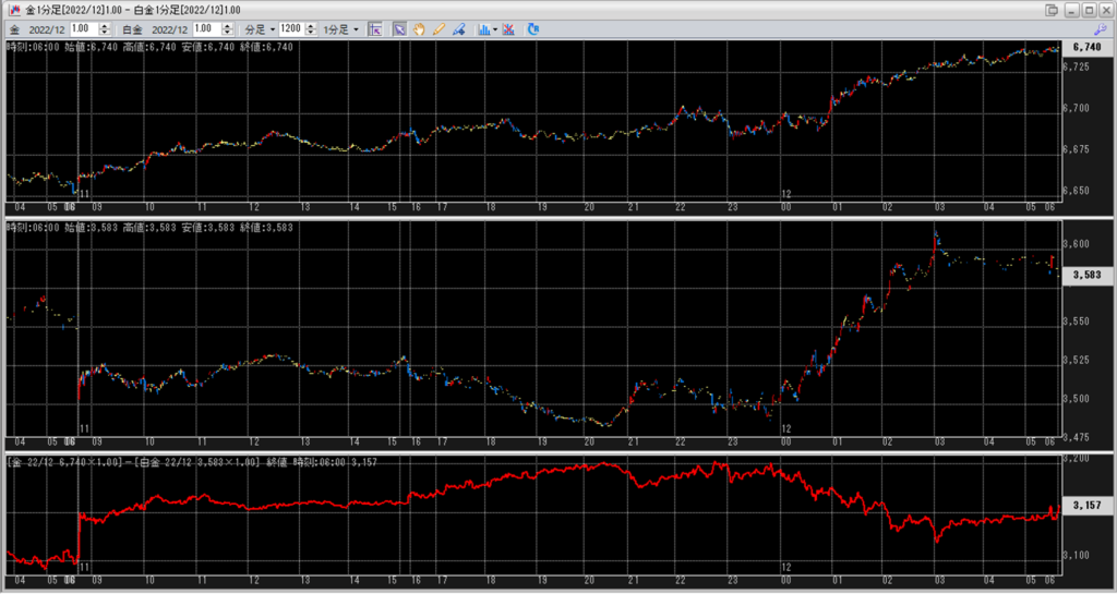 1/12の6:00の金白金の鞘の値段は、3,157円となっております。