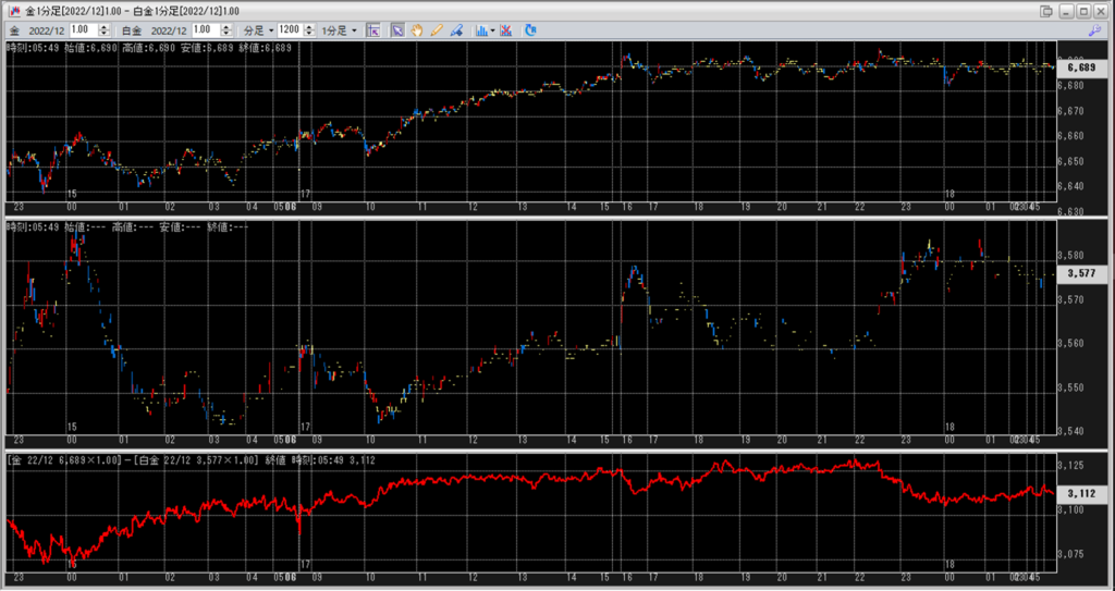 現在、鞘拡大の仕掛金買い1枚-白金売り2枚を1組、保持しており、