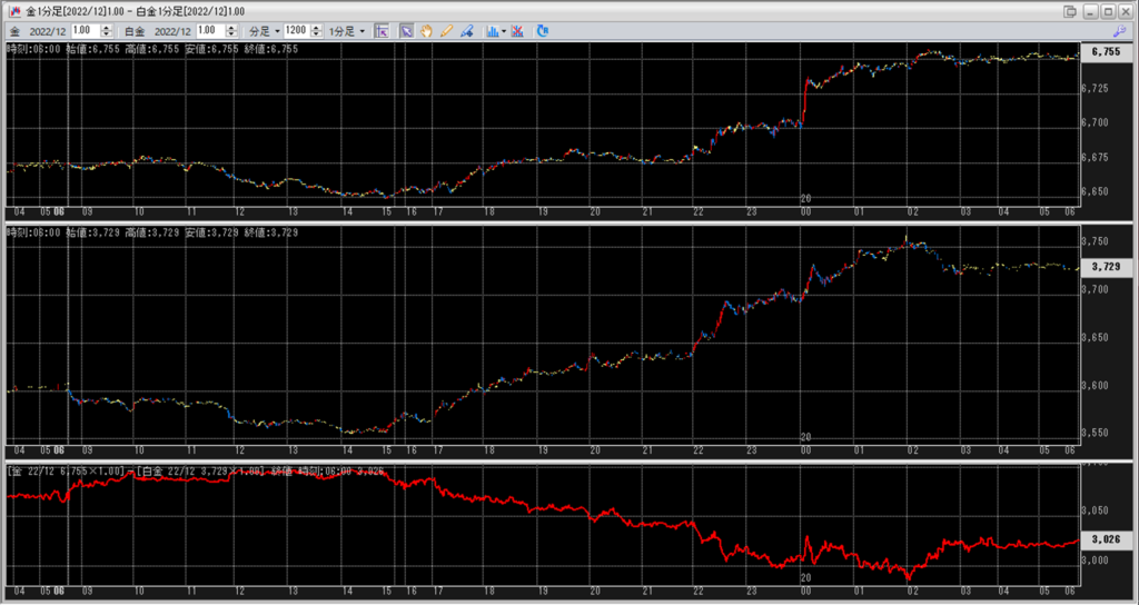 上:大阪取引所 金 2022年12月限 1分足