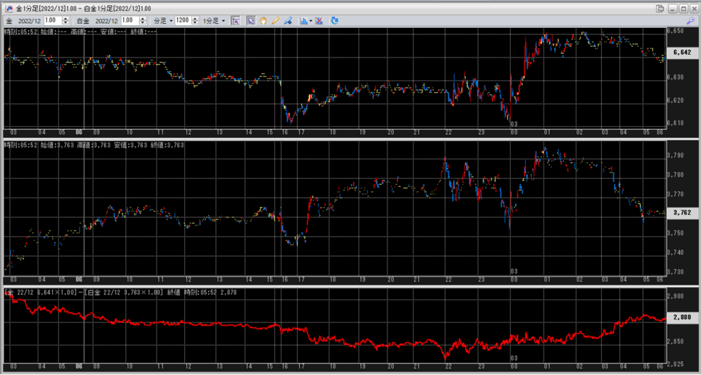 鞘縮小の仕掛け金売り1枚-白金買い2枚を建てていくのもいいかもしれません。