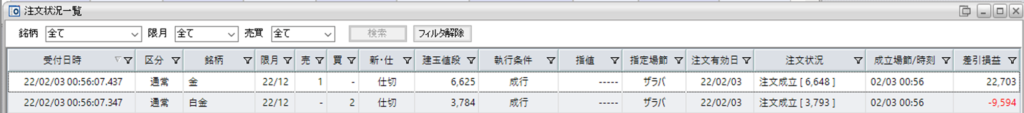 鞘拡大の仕掛け金買い1枚-白金売り2枚を追加しましたが、