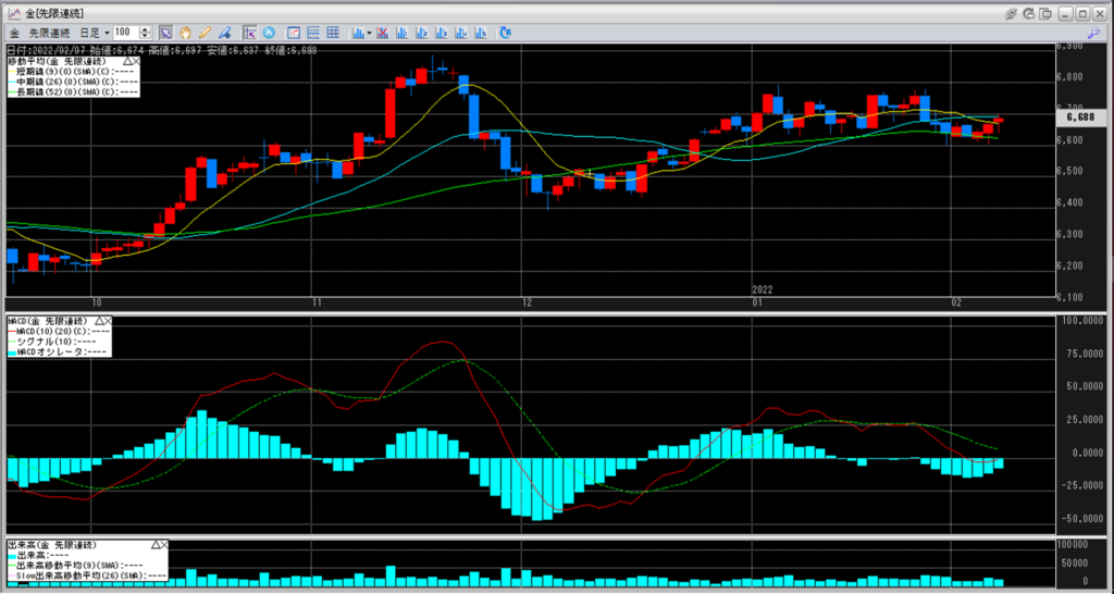 変わらず金価格は6,600円から6,800円の狭い範囲での値動きが続いています。