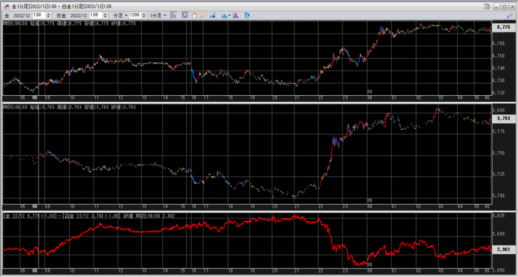 鞘縮小の仕掛け金売り1枚-白金買い2枚を建てていくのもいいかもしれません。