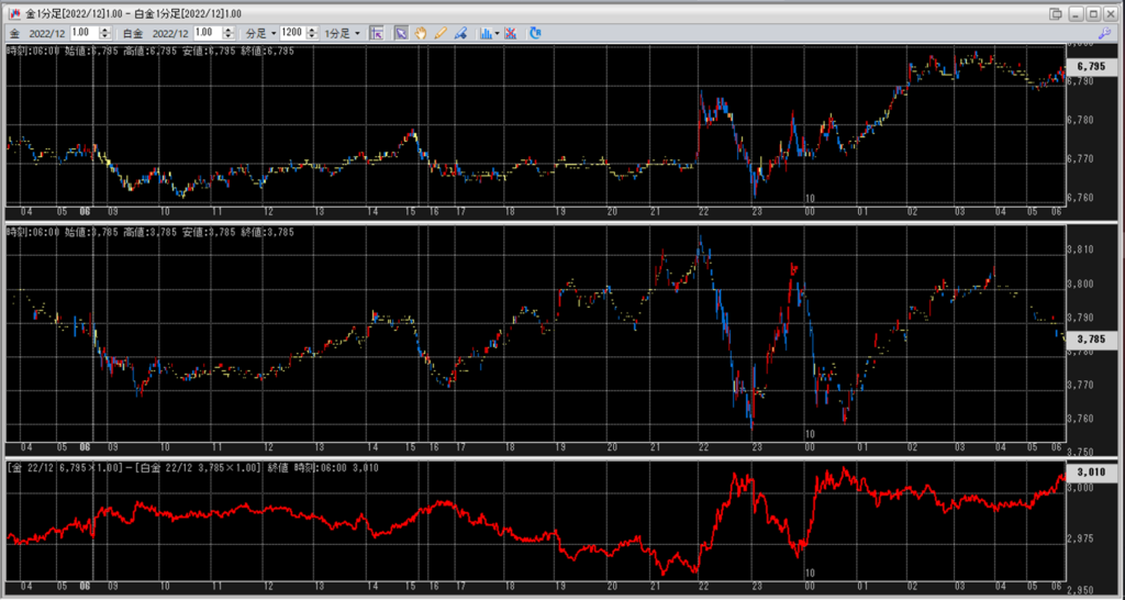 閉会前に鞘縮小の仕掛け金売り1枚-白金買い2枚を建てていくのもいいかもしれません。
