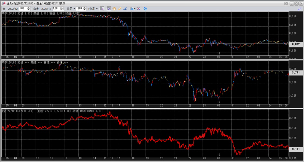 上:大阪取引所 金 2022年12月限 1分足
