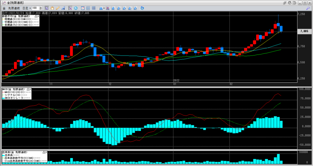 移動平均線の一番上に位置している短期線7,000円の少し上で