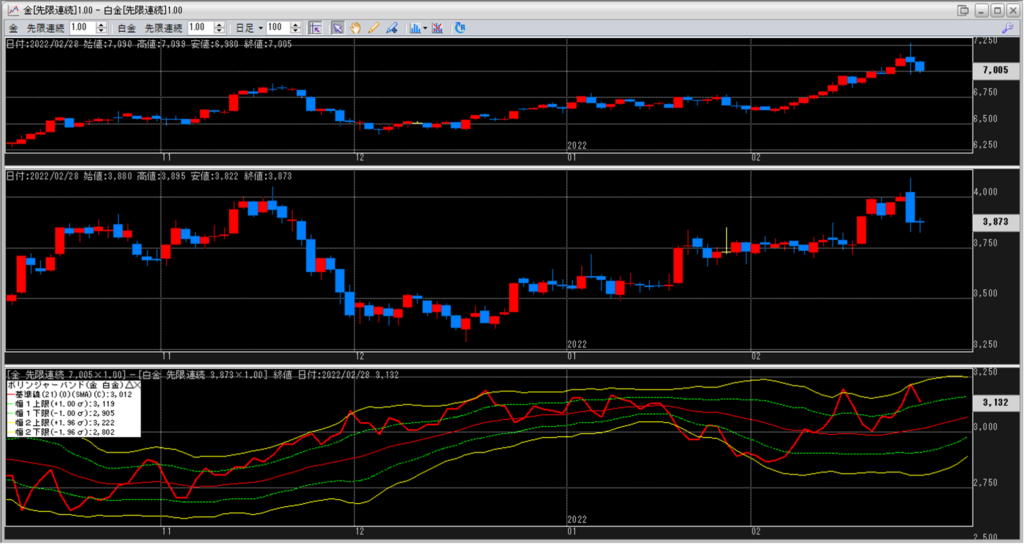 金白金の鞘をボリンジャーバンドを見ていきます。