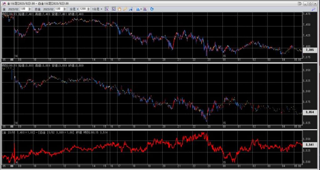 中:大阪取引所 白金 2023年2月限 1分足