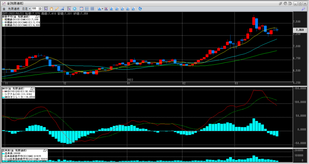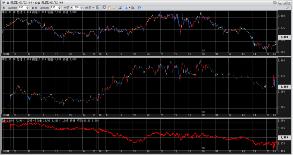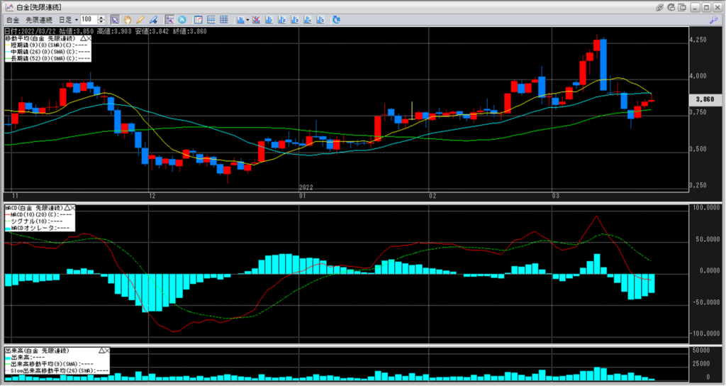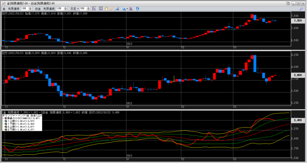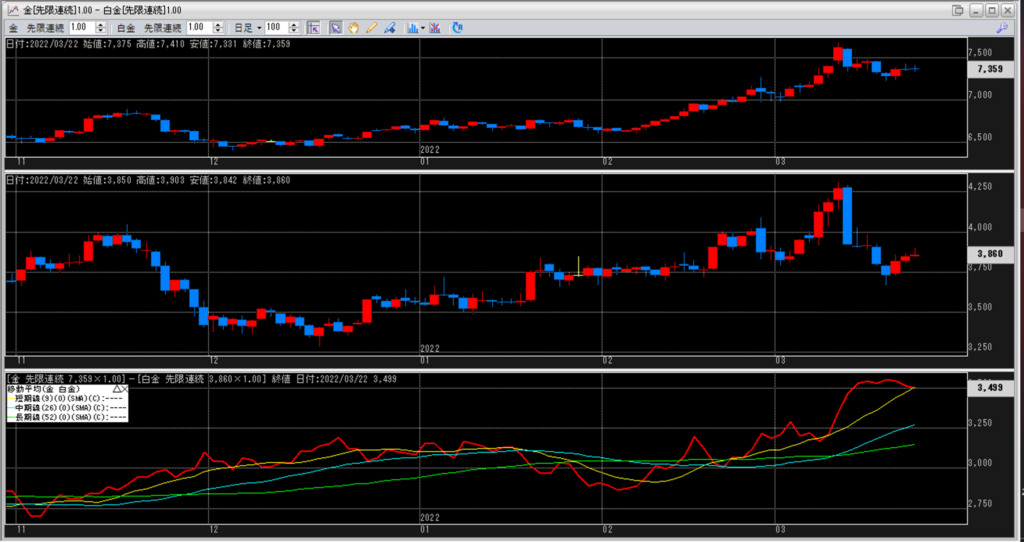下記に金白金の鞘の移動平均線のチャートを張り付けています。