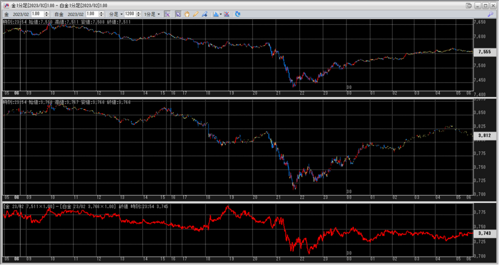 上:大阪取引所 金 2023年2月限 1分足