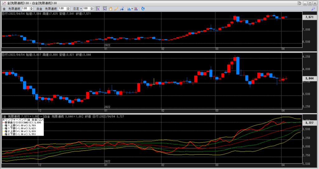 金白金の鞘をボリンジャーバンドで見ていきます。