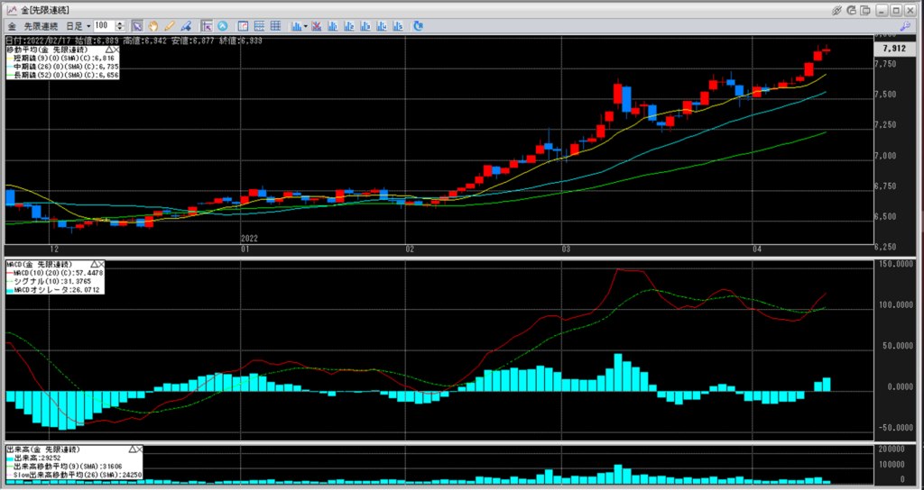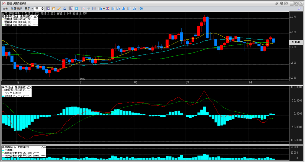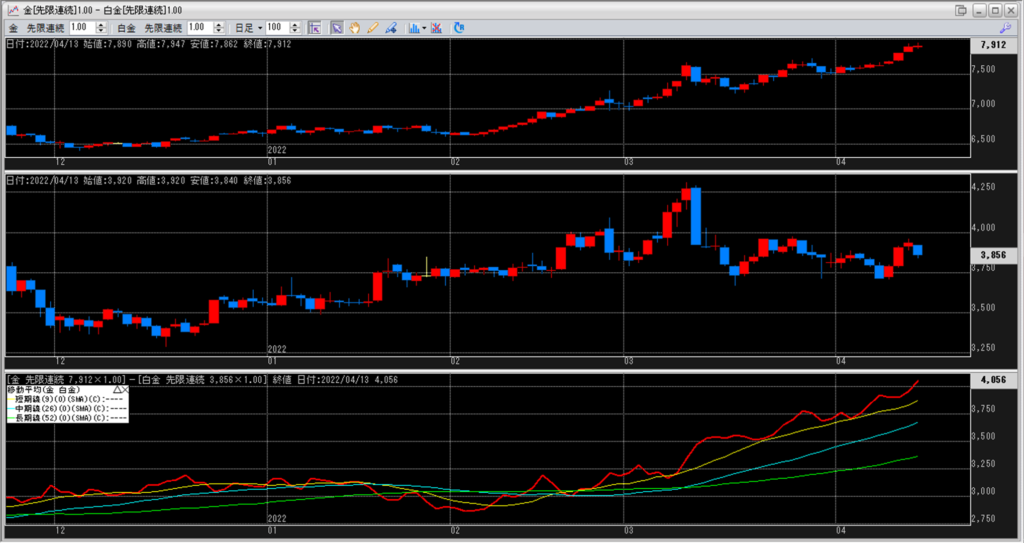 下記に金白金鞘の移動平均線のチャートを貼り付けています。