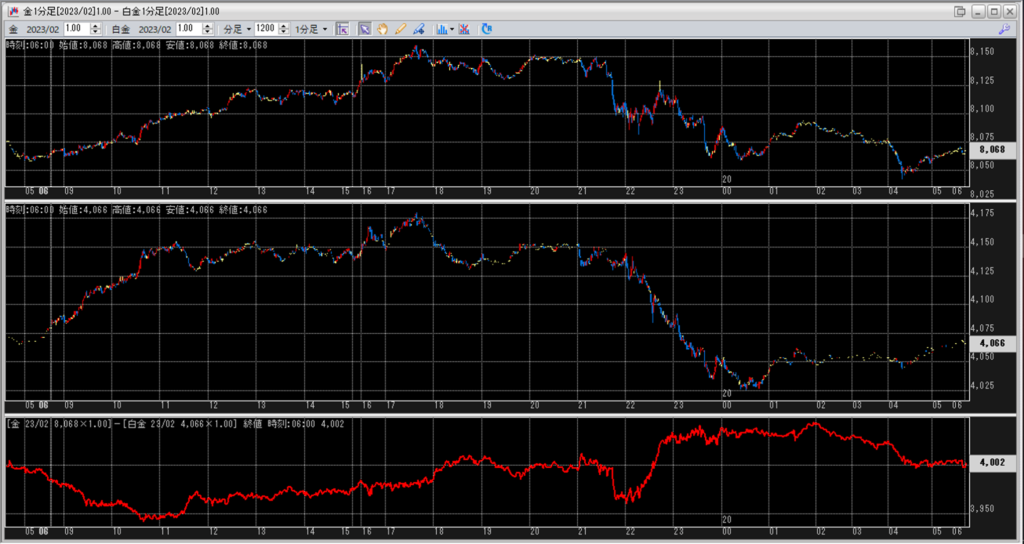 気合を入れて、最後の鞘縮小の仕掛け金売り1枚-白金買い2枚を仕切った影響です。