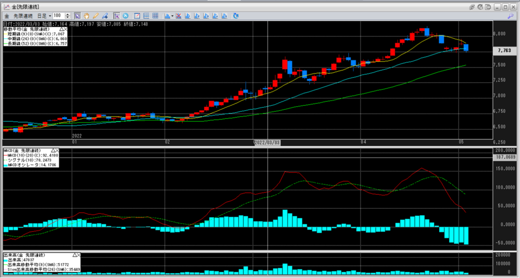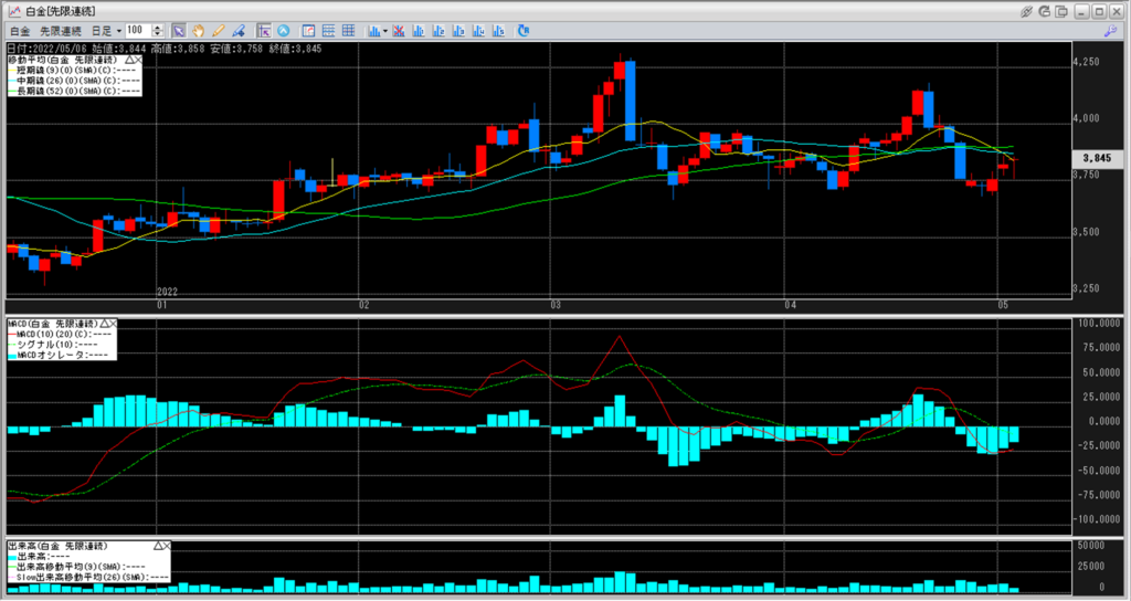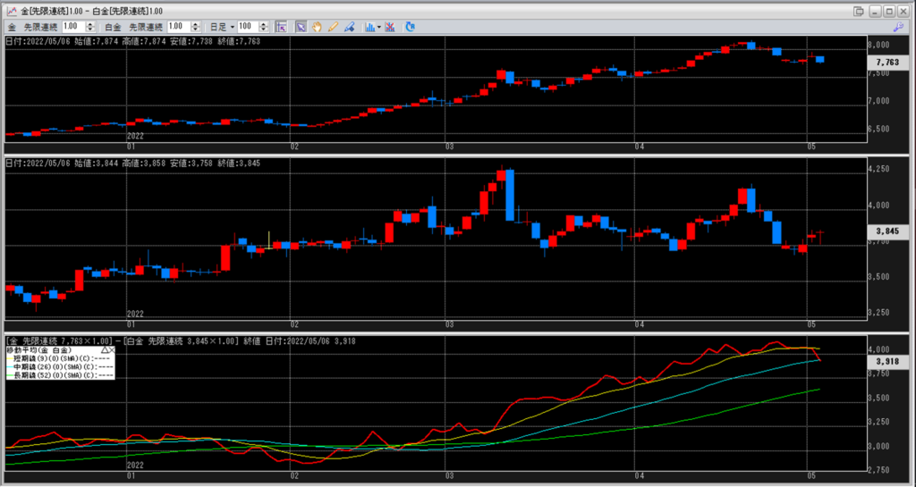 下記に金白金鞘の移動平均線のチャートを貼り付けています。