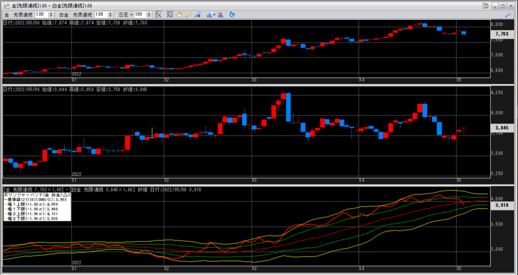 金白金の鞘をボリンジャーバンドで見ていきます。