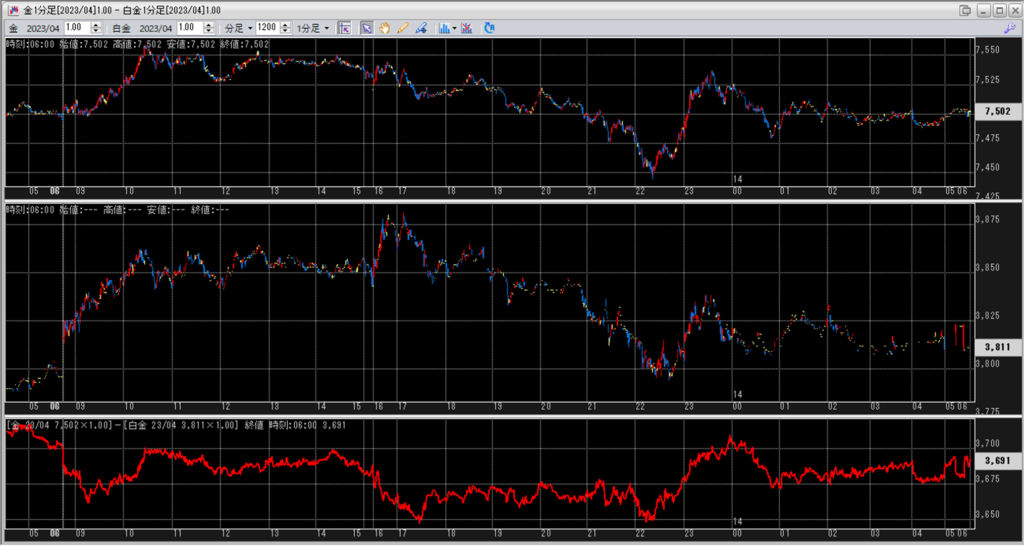 鞘縮小の仕掛け金売り1枚-白金買い2枚を建てようかと検討したいと思います。