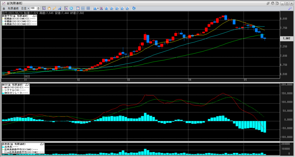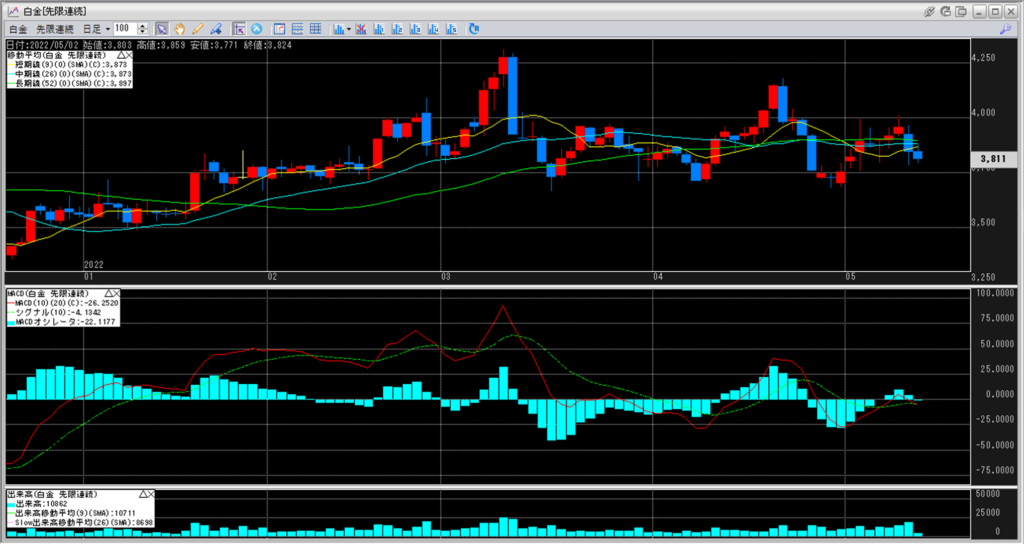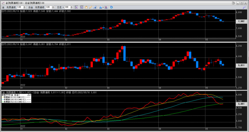 下記に金白金鞘の移動平均線のチャートを貼り付けています。