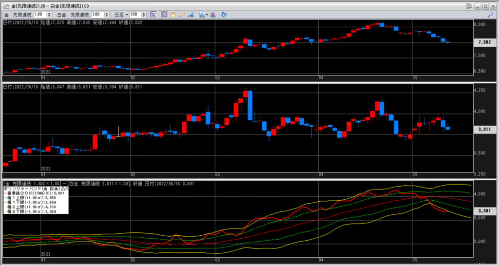 金白金の鞘をボリンジャーバンドで見ていきます。