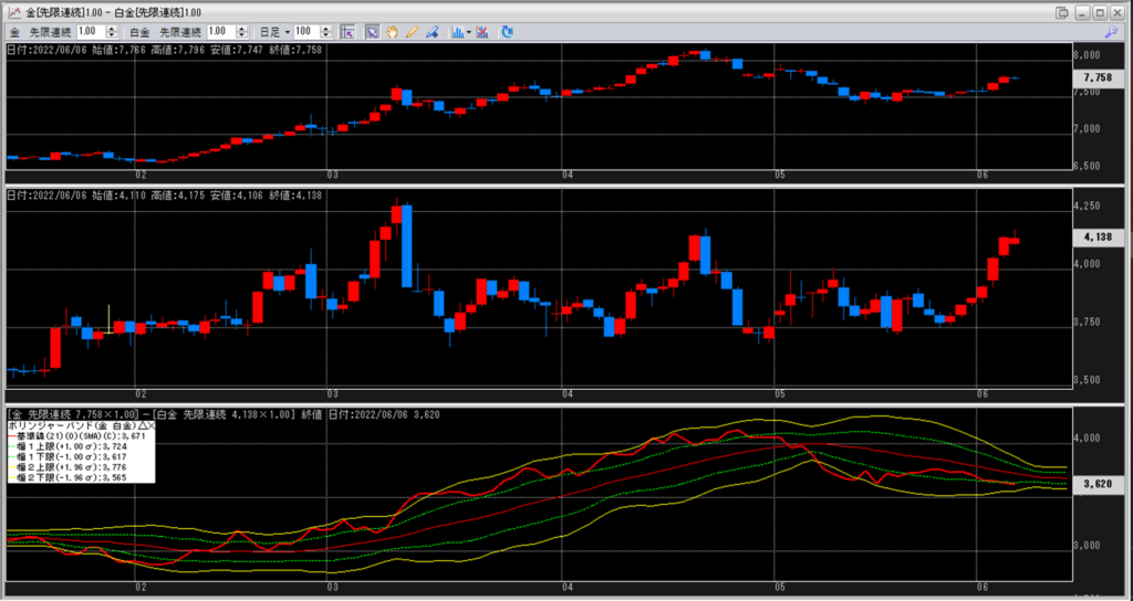金白金の鞘をボリンジャーバンドで見ていきます。