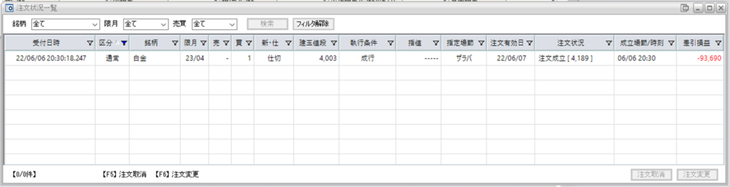 誤りだったようで、昨日、白金売り1枚を村議っています。