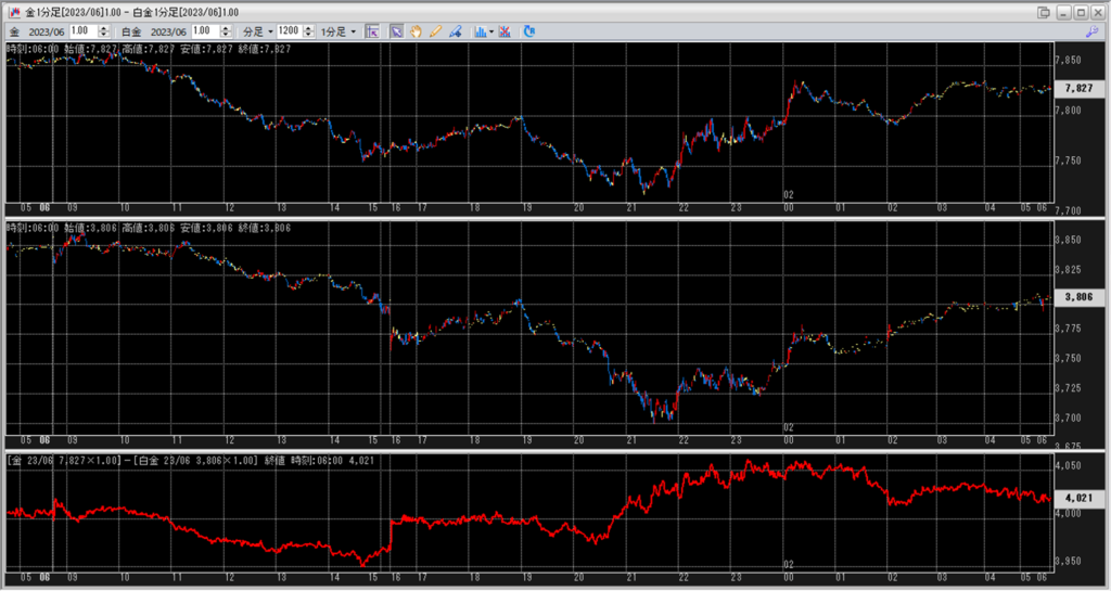上:大阪取引所 金 2023年6月限 1分足