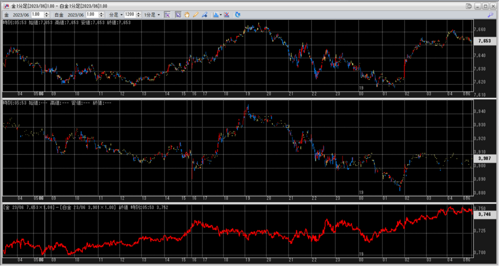 上:大阪取引所 金 2023年6月限 1分足