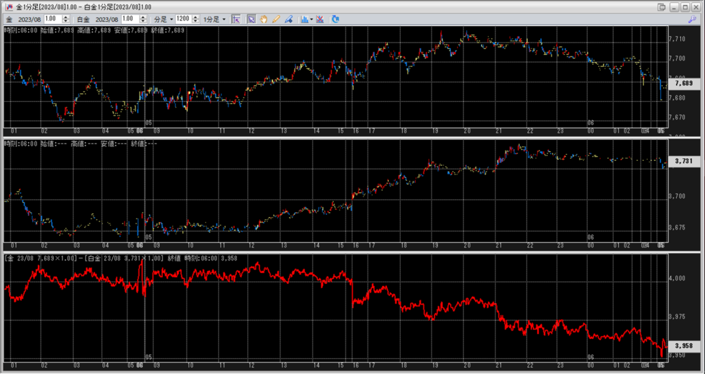 全体的にチャートを見ると、鞘拡大方向かなと見えなくもないので、
