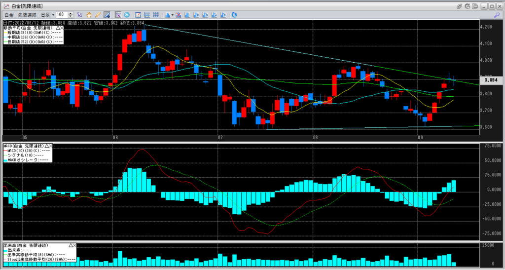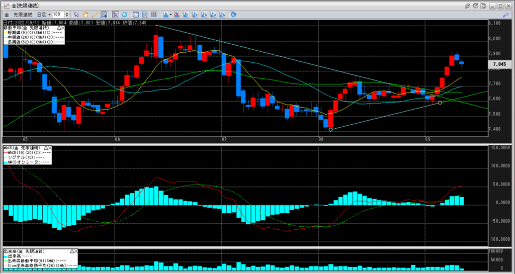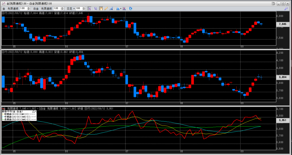 下記に金白金鞘の移動平均線のチャートを貼り付けています。