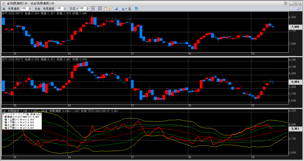 金白金の鞘をボリンジャーバンドで見ていきます。
