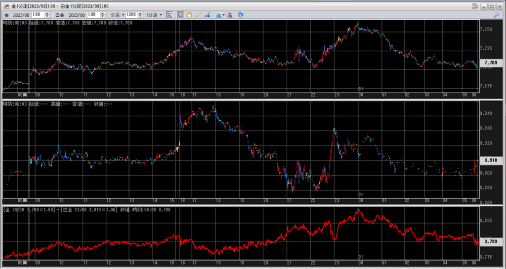 鞘縮小の仕掛け金売り1枚-白金買い2枚を建てていくのもいいかもしれません。