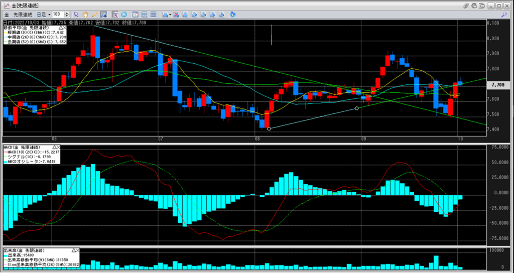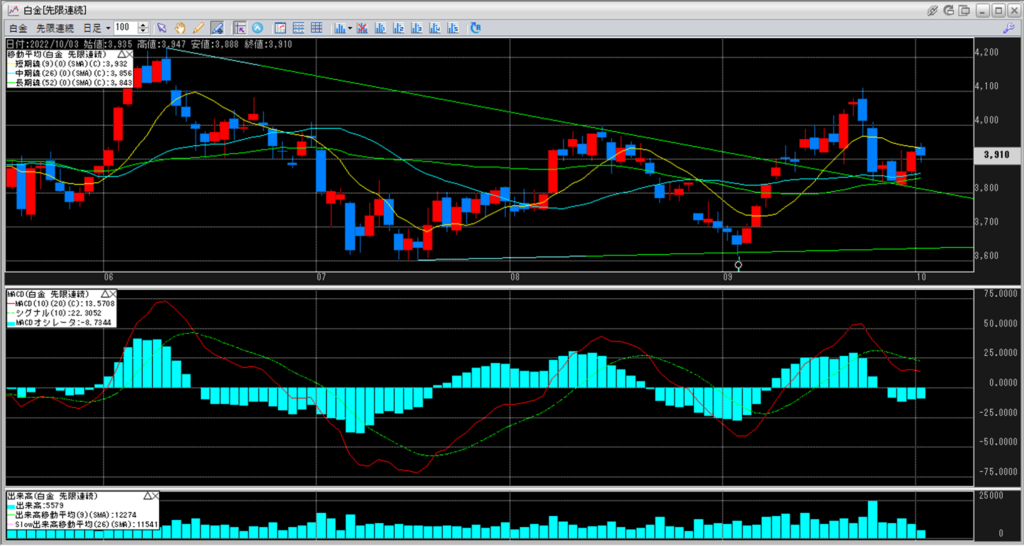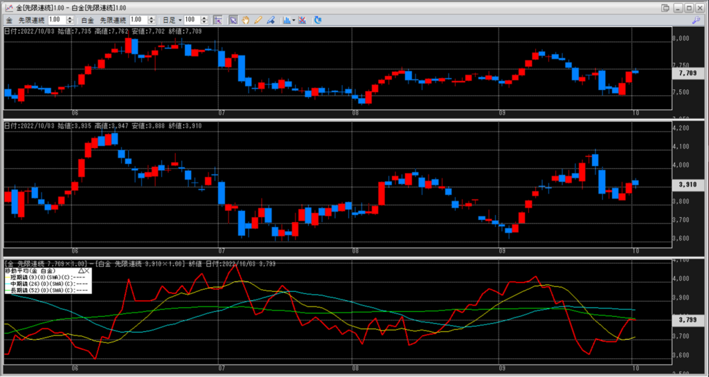 下記に金白金鞘の移動平均線のチャートを貼り付けています。