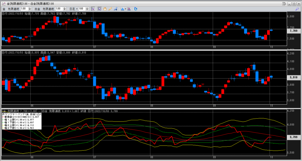 金白金の鞘をボリンジャーバンドで見ていきます。